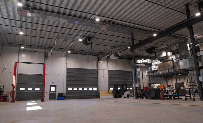 Honco offre une flexibilité de conception afin d'incorporer l'aménagement intérieur de votre choix. De plus, le bâtiment d’acier préfabriqué Honco offre une très large portée libre. Son concept unique ne nécessite aucun élément structural le long des murs, maximisant votre espace de travail.