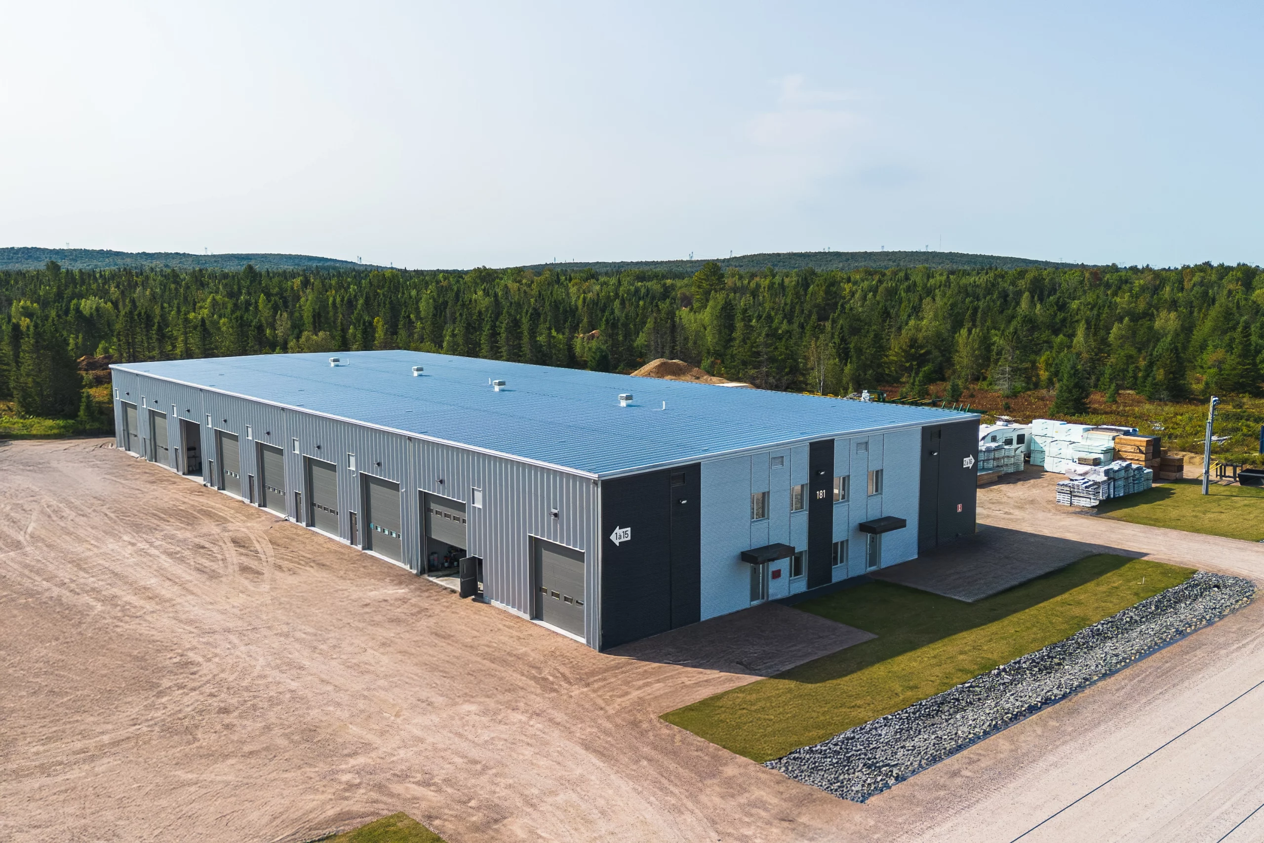 Honco a été mandaté pour la fourniture et l’installation d’un bâtiment préfabriqué en acier de plus de 23 000 pi² dans le parc industriel de St-Raymond. Le bâtiment de type TP-4000 offre une grande portée libre adaptée aux besoins spécifiques du client et un espace commercial idéal pour les multiples condos locatifs de l'établissement.